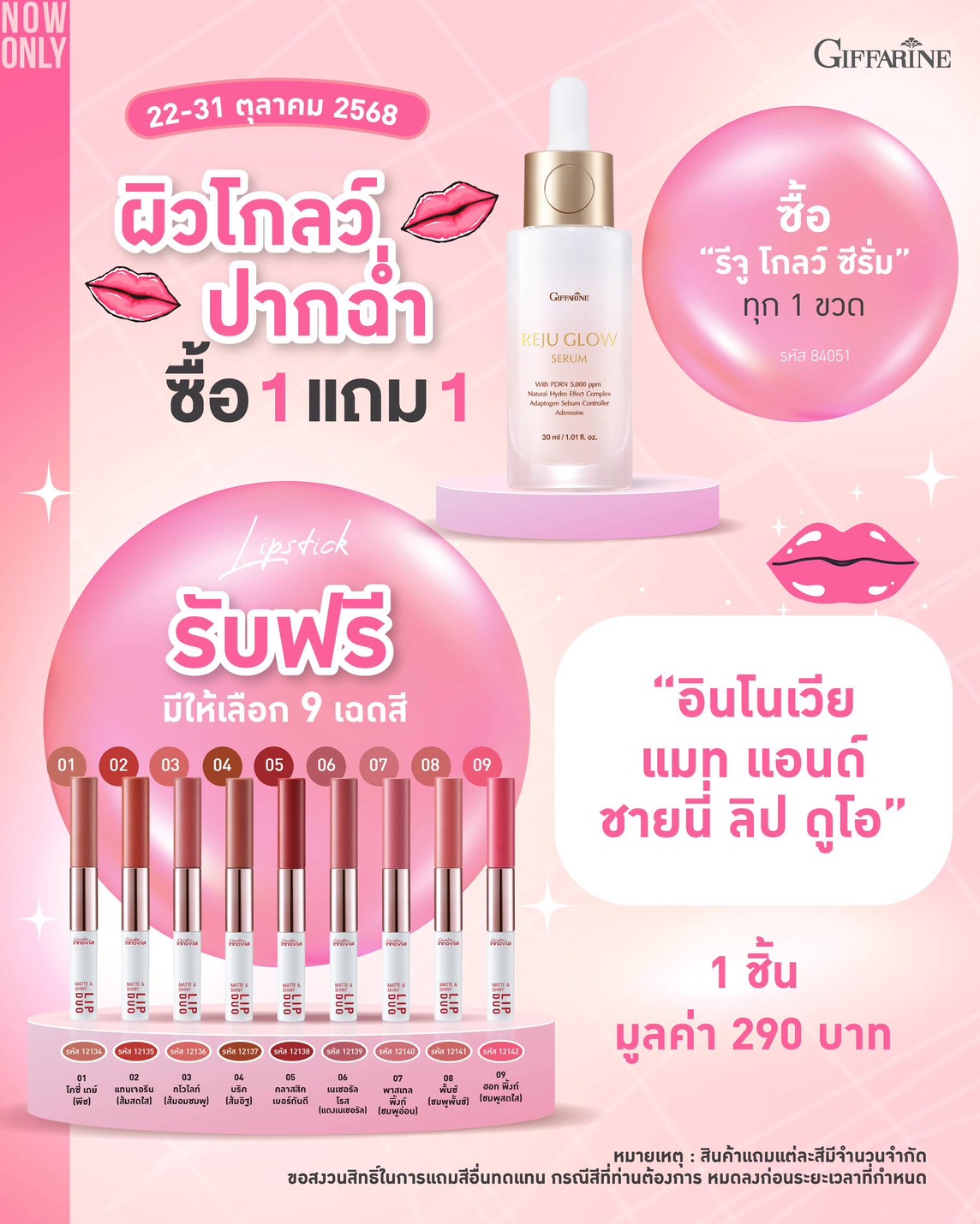 กิฟฟารีน รีจู โกลว์ ซีรั่ม Giffarine Reju Glow Serum “ผิวฉ่ำเงา โกลว์ใส...ดุจผิวกระจก” ซีรั่มผิวกระจก สูตรเข้มข้น บูสต์ผิวโกลว์ใส เรียบเนียน ดุจผิวกระจก ด้วยนวัตกรรม Active ประสิทธิภาพสูง