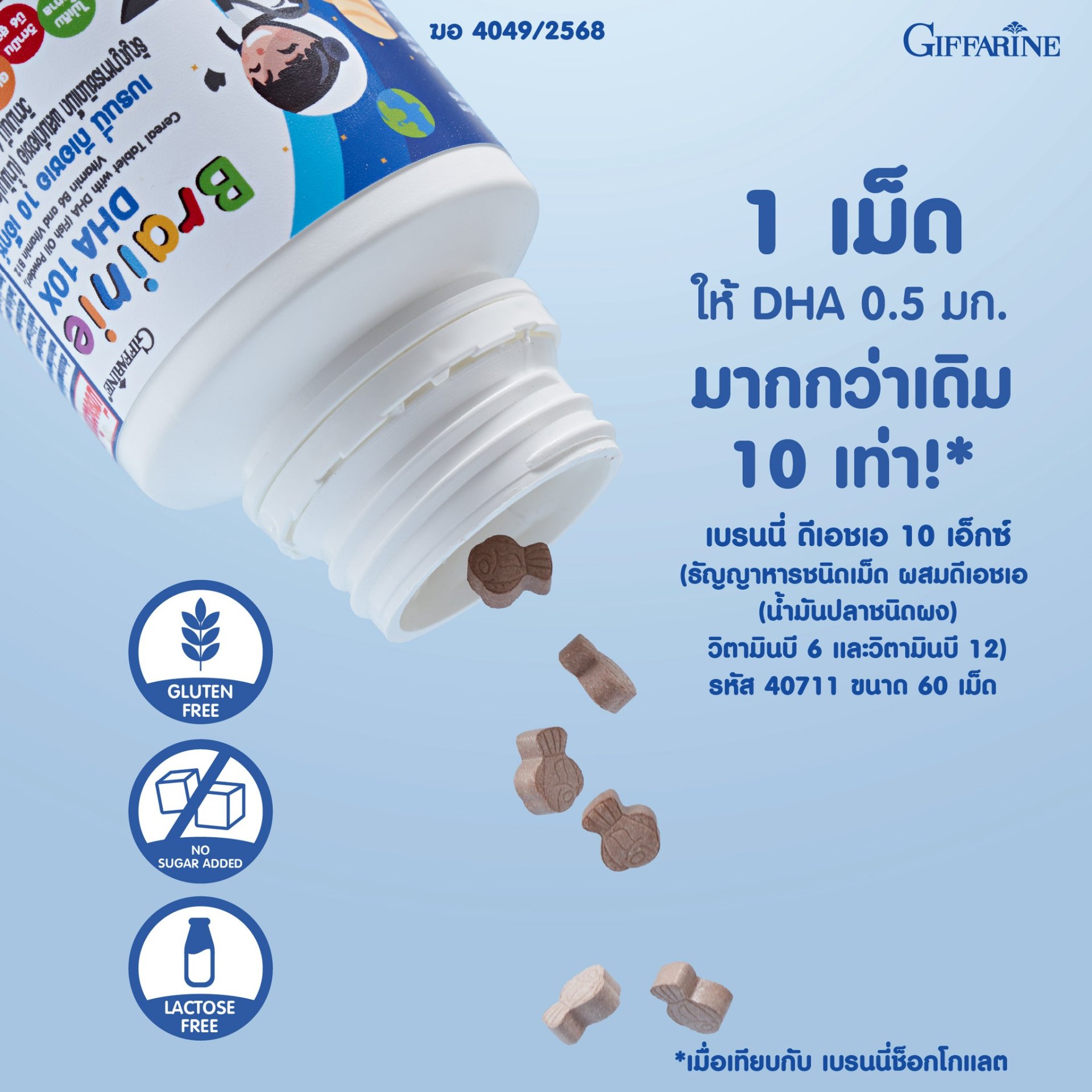 เบรนนี่ ดีเอชเอ 10 เอกซ์ ธัญญาหารชนิดเม็ด ผสมดีเอชเอ (น้ำมันปลาชนิดผง) วิตามินบี 6 และวิตามินบี 12